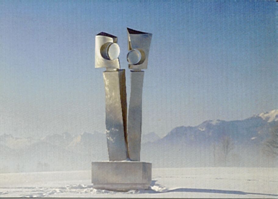 Otto Wesendonck, "Dialog" 1987/88; Edelstahl mit rotierenden Windblättern, 480 cm x 150 cm x 125 cm; ProMinent Dosiertechnik, Heidelberg