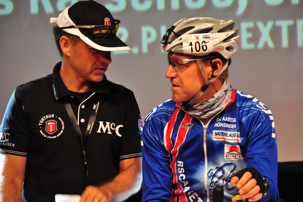 Matthias Knill gibt am Einzelstart jedem Athleten die besten Wünsche mit auf den langen Weg.